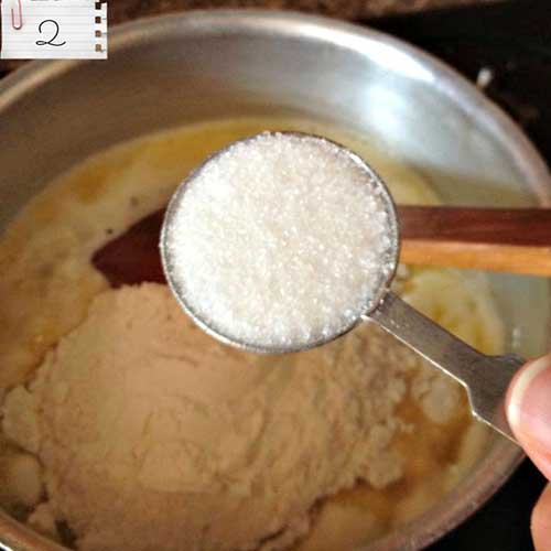 2. Ajouter la farine et le sucre.